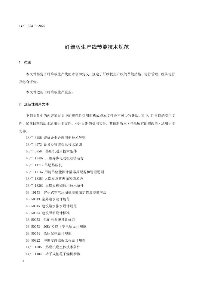 LY/T 3241-2020 纤维板生产线节能技术规范