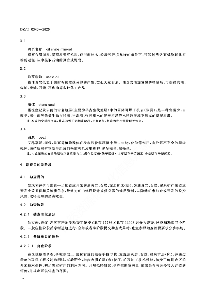 DZ/T 0346-2020 矿产地质勘查规范 油页岩、石煤、泥炭