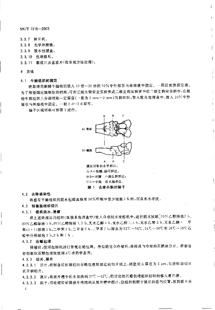 SN/T 1316-2003 牛海绵状脑病组织病理学检查方法