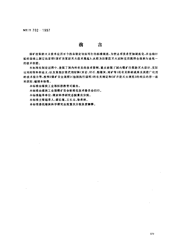 MT/T 702-1997 煤矿注浆防灭火技术规范
