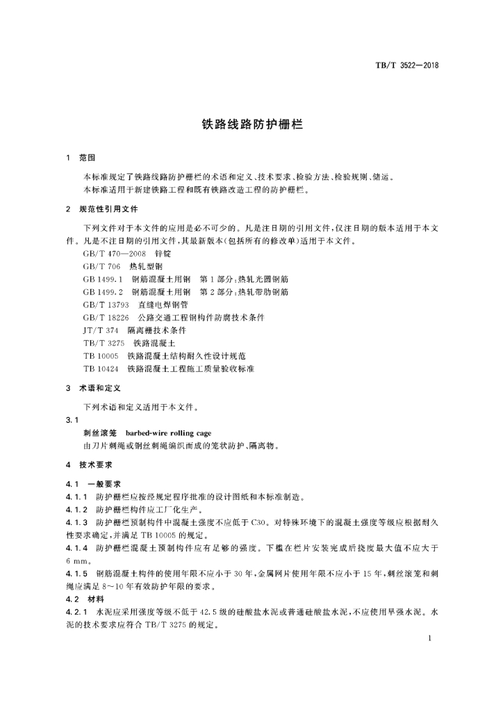 TB/T 3522-2018 铁路线路防护栅栏