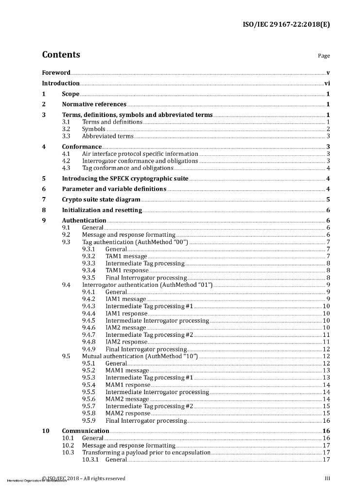 ISO/IEC 29167-22-2018 信息技术 自动识别和数据捕获技术 第22部分:空中接口通信用密码套件speck安全服务