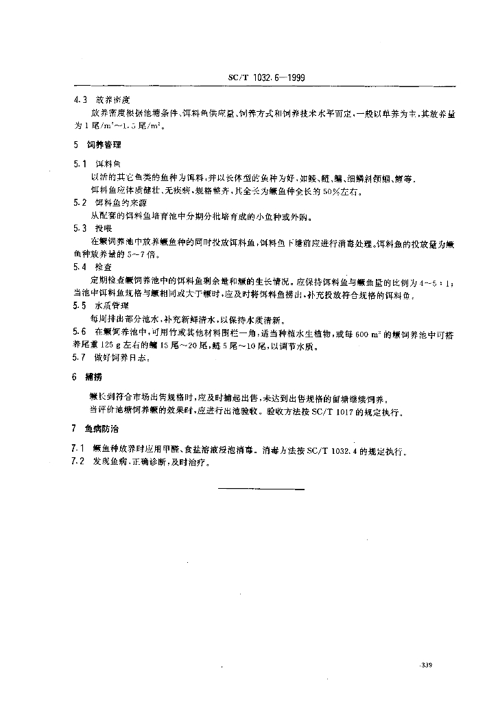SC/T 1032.6-1999 鳜养殖技术规范 池塘饲养食用鱼技术