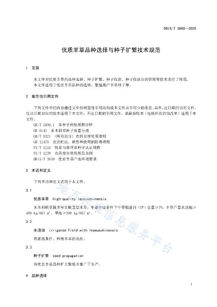DB15/T 3860-2025 优质羊草品种选择与种子扩繁技术规范