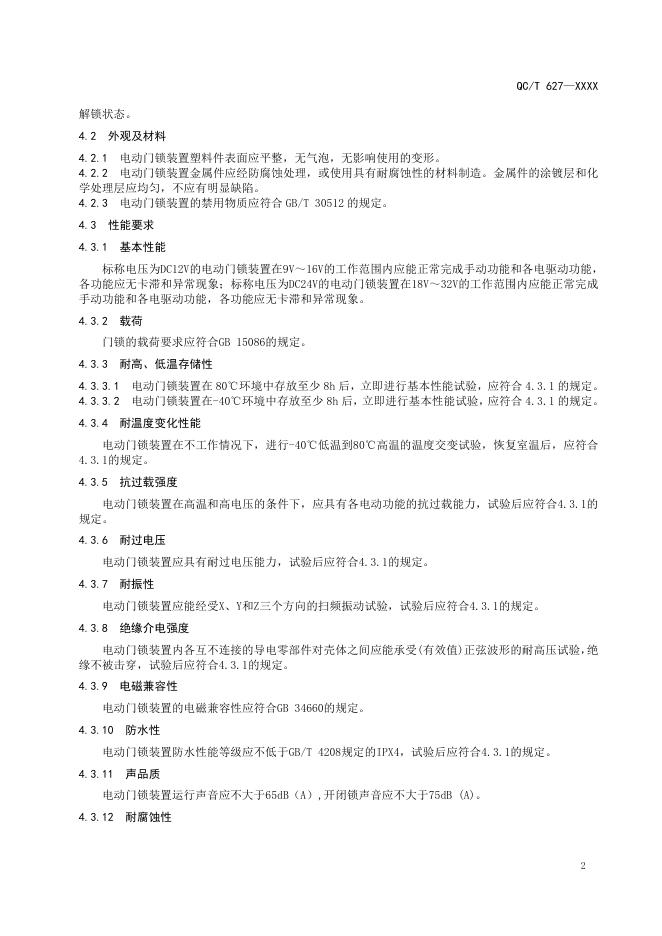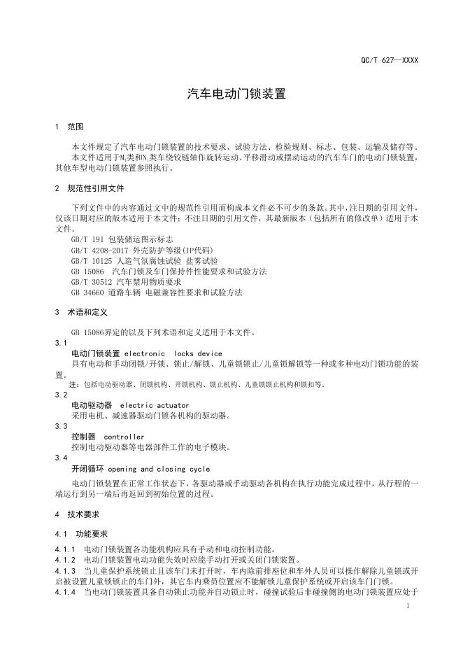 QC/T 627-2025 汽车电动门锁装置