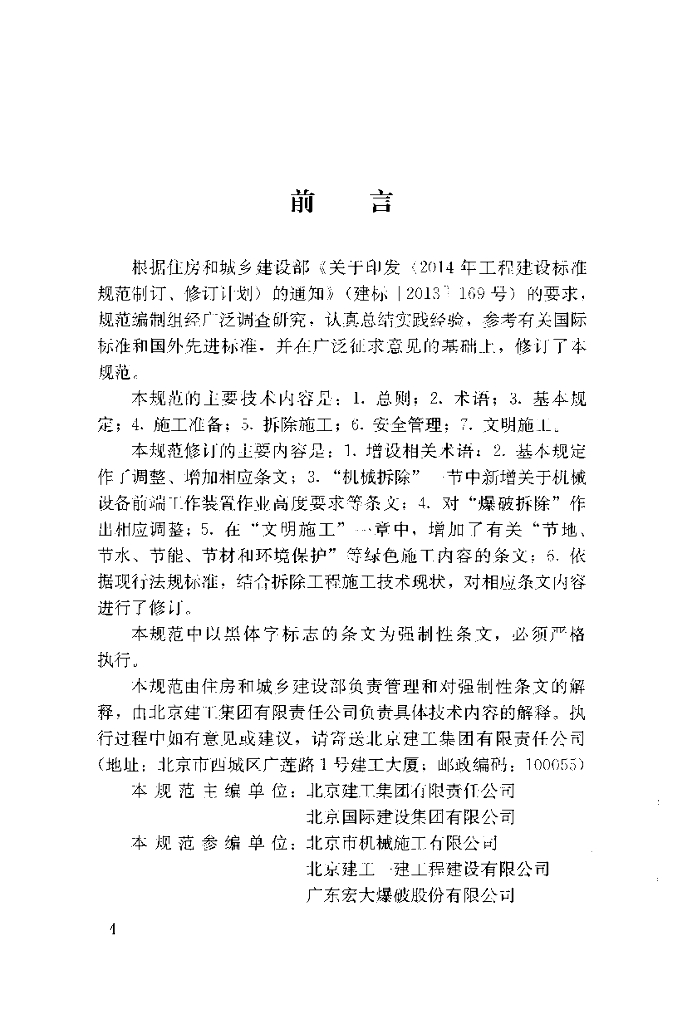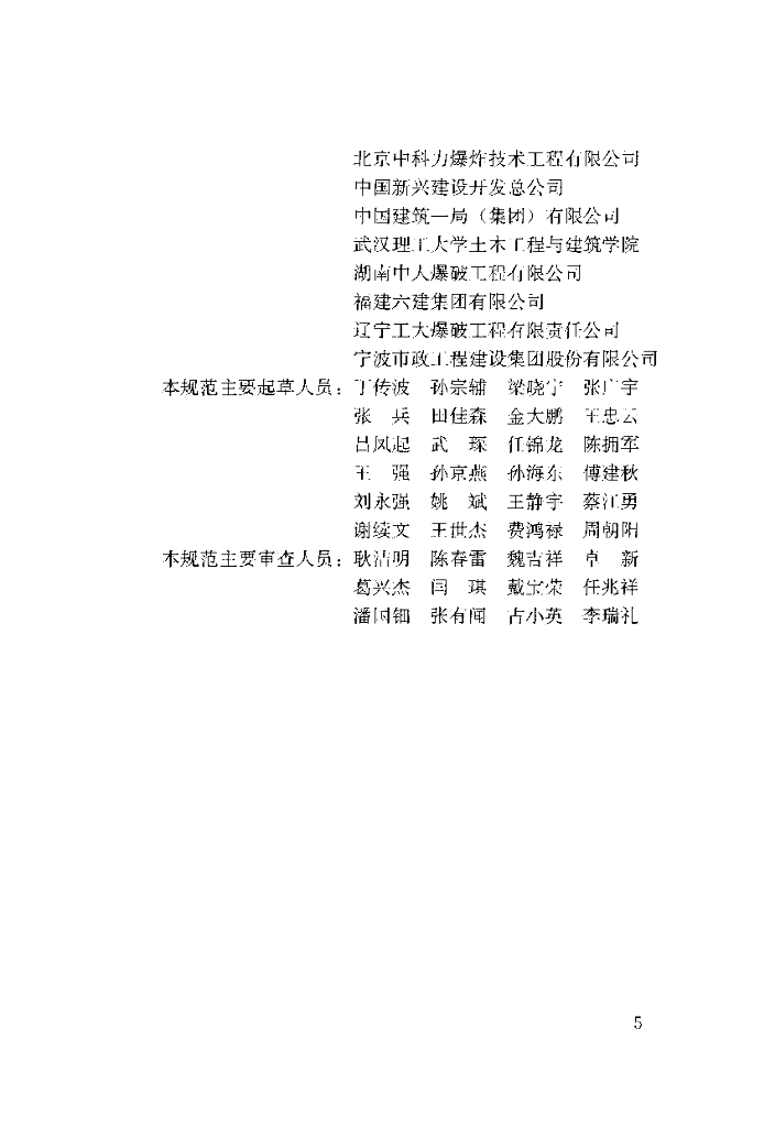 北京建工集团有限责任公司、北京国际建设集团有限公司、北京市机械施工有限公司、北京建工一建工程建设有限公司、广东宏大爆破股份有限公司、北京中科力爆炸技术工程有限公司、中国新兴建设开发总公司、中国建筑一局(集团)有限公司、武汉理工大学土木工程与建筑学院、湖南中人爆破工程有限公司、福建六建集团有限公司、辽宁工大爆破工程有限责任公司、宁波市政工程建设集团股份有限公司