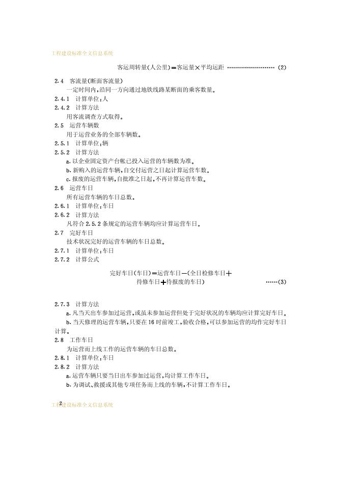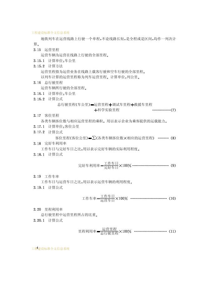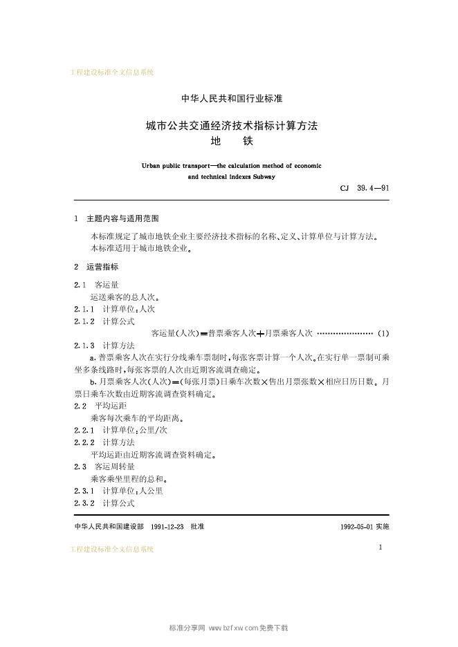 CJ 39.4-1991 城市公共交通经济技术指标计算方法地铁