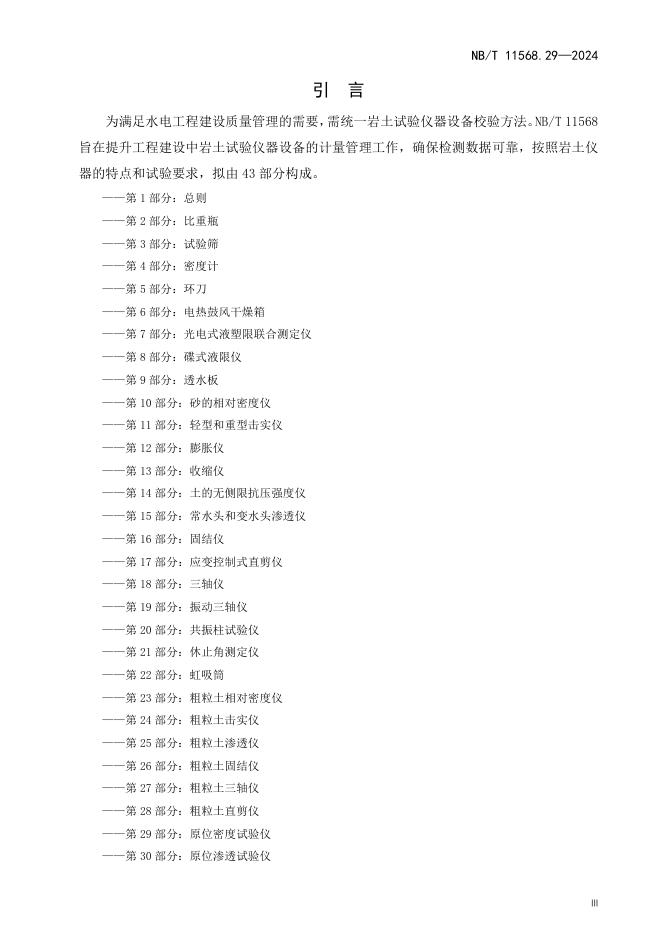 NB/T 11568.29-2024 水电工程岩土试验仪器设备校验规程 第29部分:原位密度试验仪