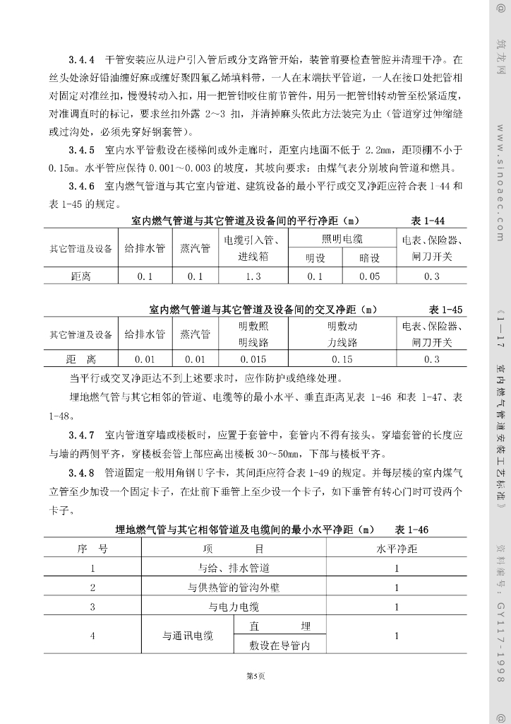 GY 117-1998 1-17室内燃气管道安装工艺标准