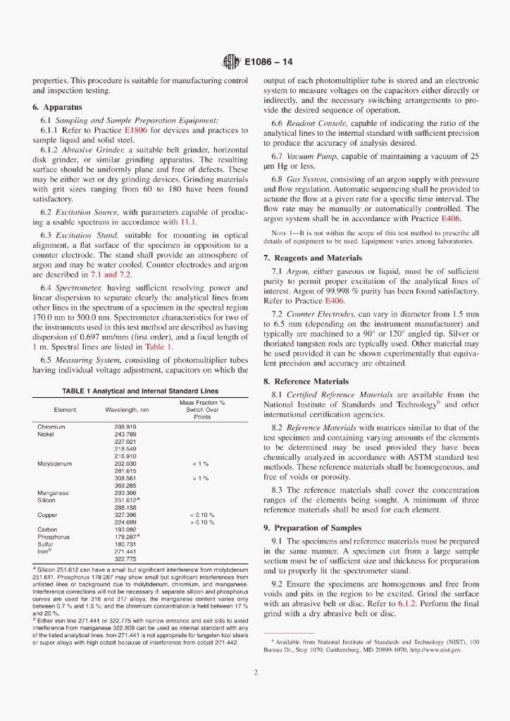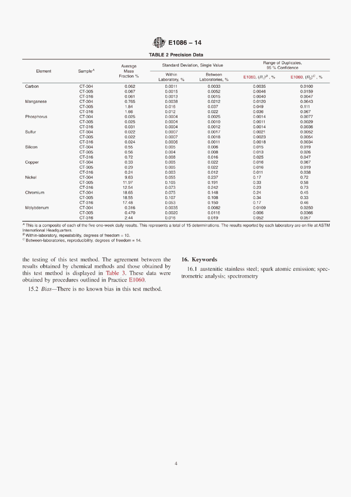 ASTM E1086-14 Standard Test Method for Analysis of Austenitic Stainless Steel by Spark AtomicEmission Spectrometry