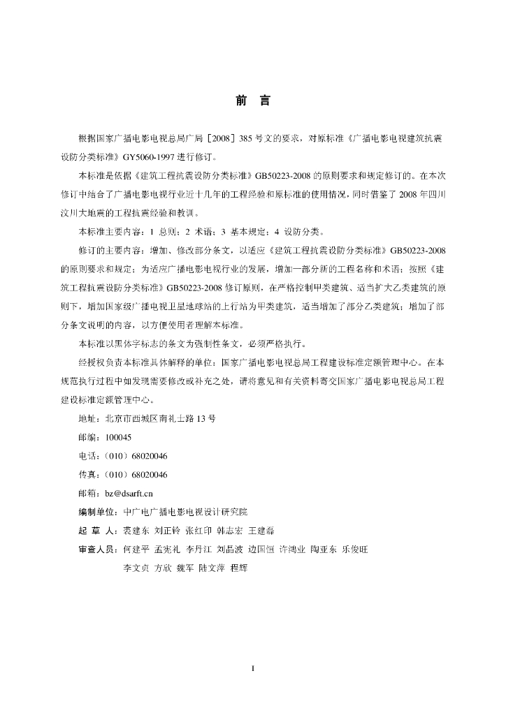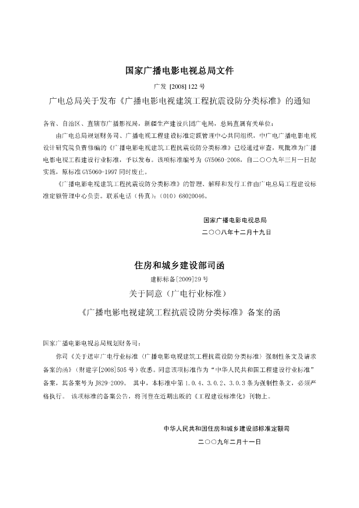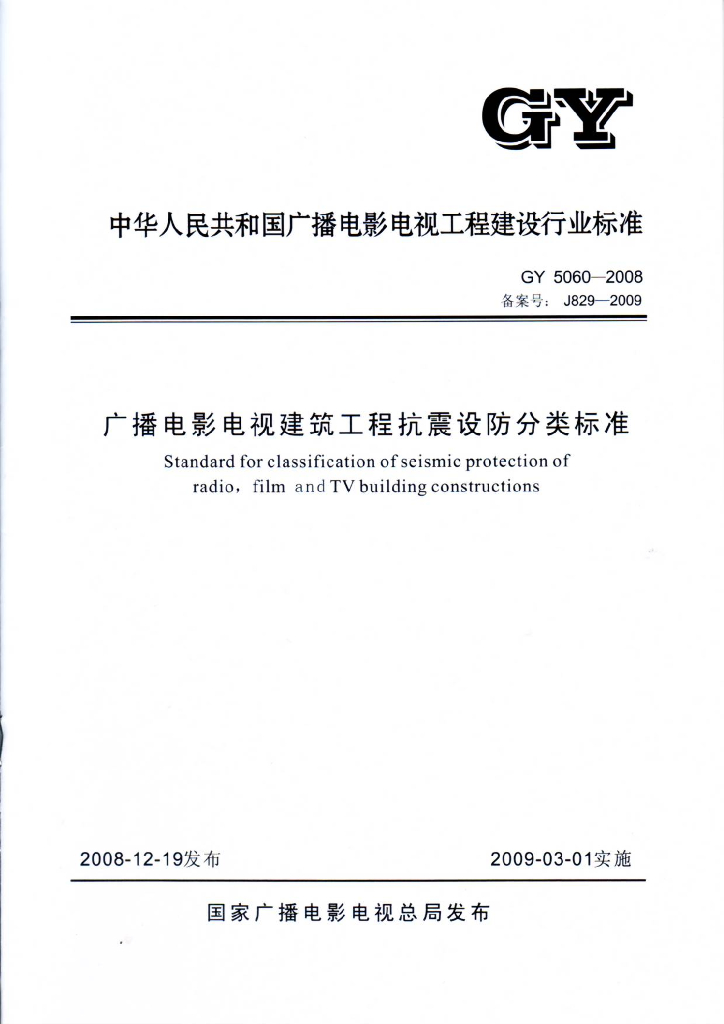 GY 5060-2008 广播电影电视建筑工程抗震设防分类标准