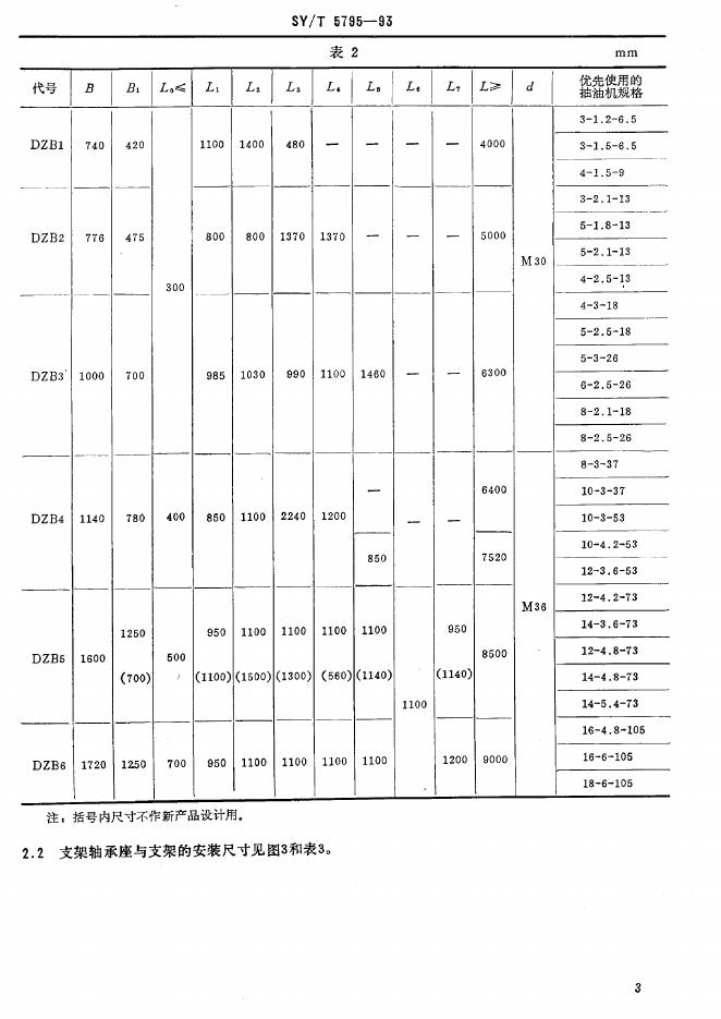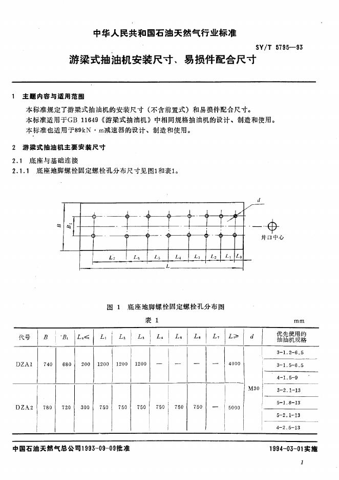SY/T 5795-1993 游梁式抽油机安装尺寸、易损件配合尺寸
