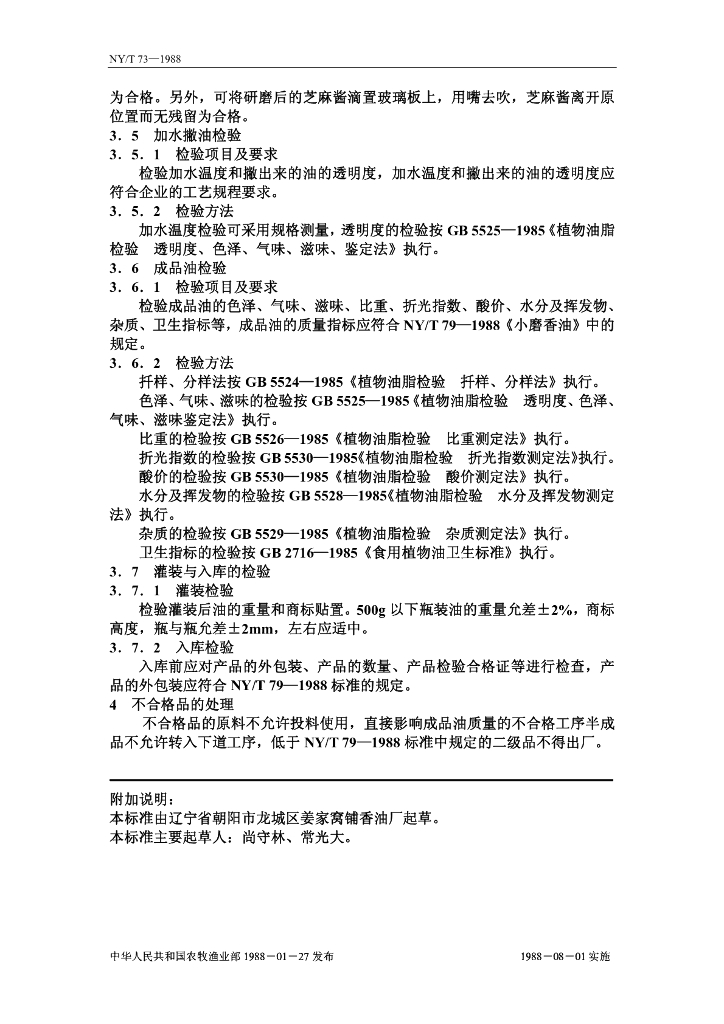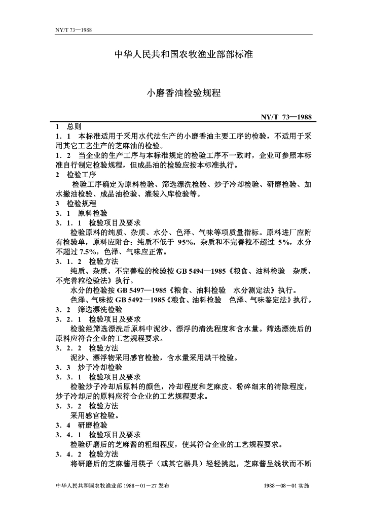 NY/T 73-1988 小磨香油检验规程