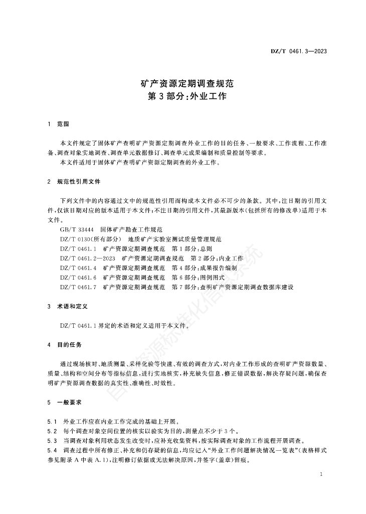 DZ/T 0461.3-2023 矿产资源定期调查规范 第3部分:外业工作