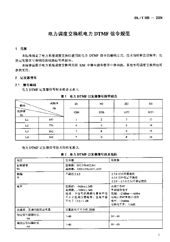 DL/T 888-2004 电力调度交换机电力DTMF信令规范