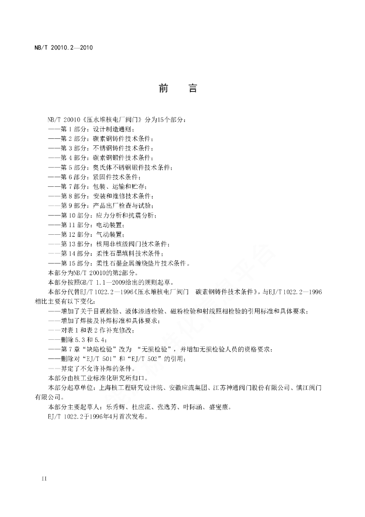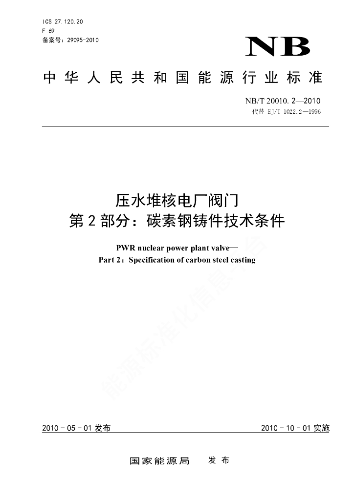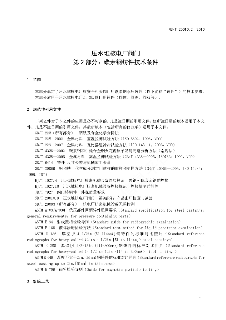 NB/T 20010.2-2010 压水堆核电厂阀门 第2部分:碳素钢铸件技术条件