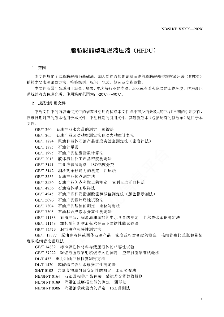 NB/SH/T 6045-2021 脂肪酸酯型难燃液压液(HFDU)