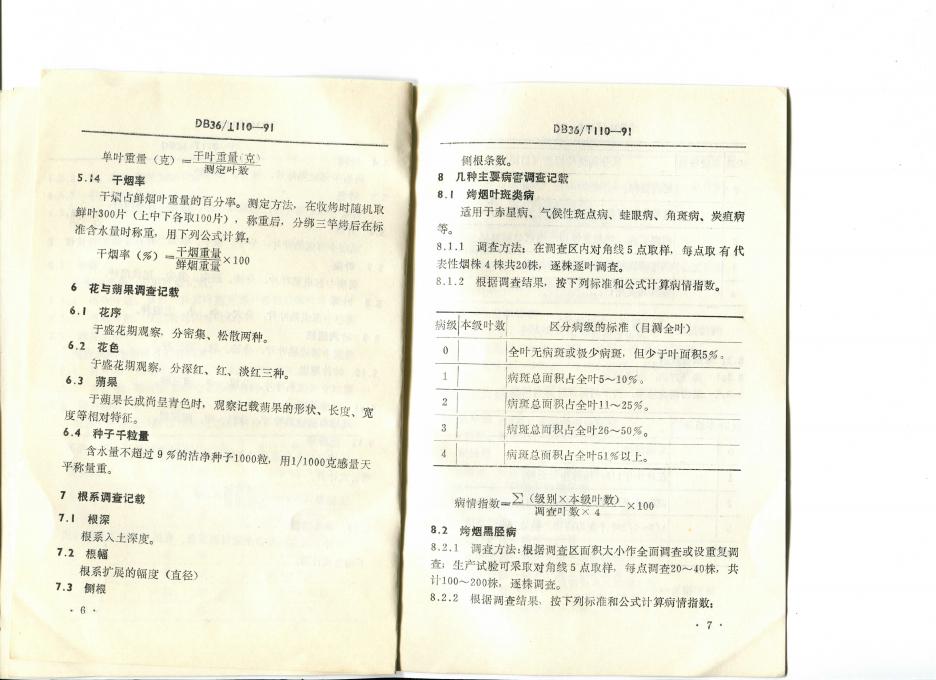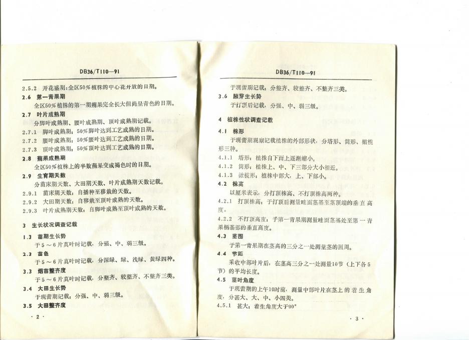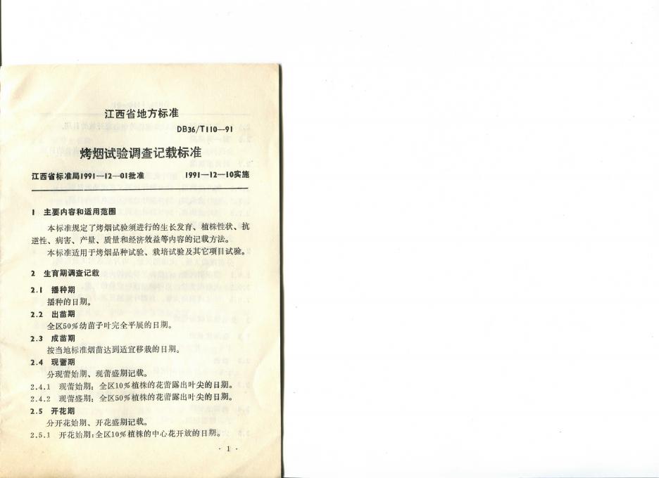 DB36/T 110-1991 烤烟试验调查记载标准