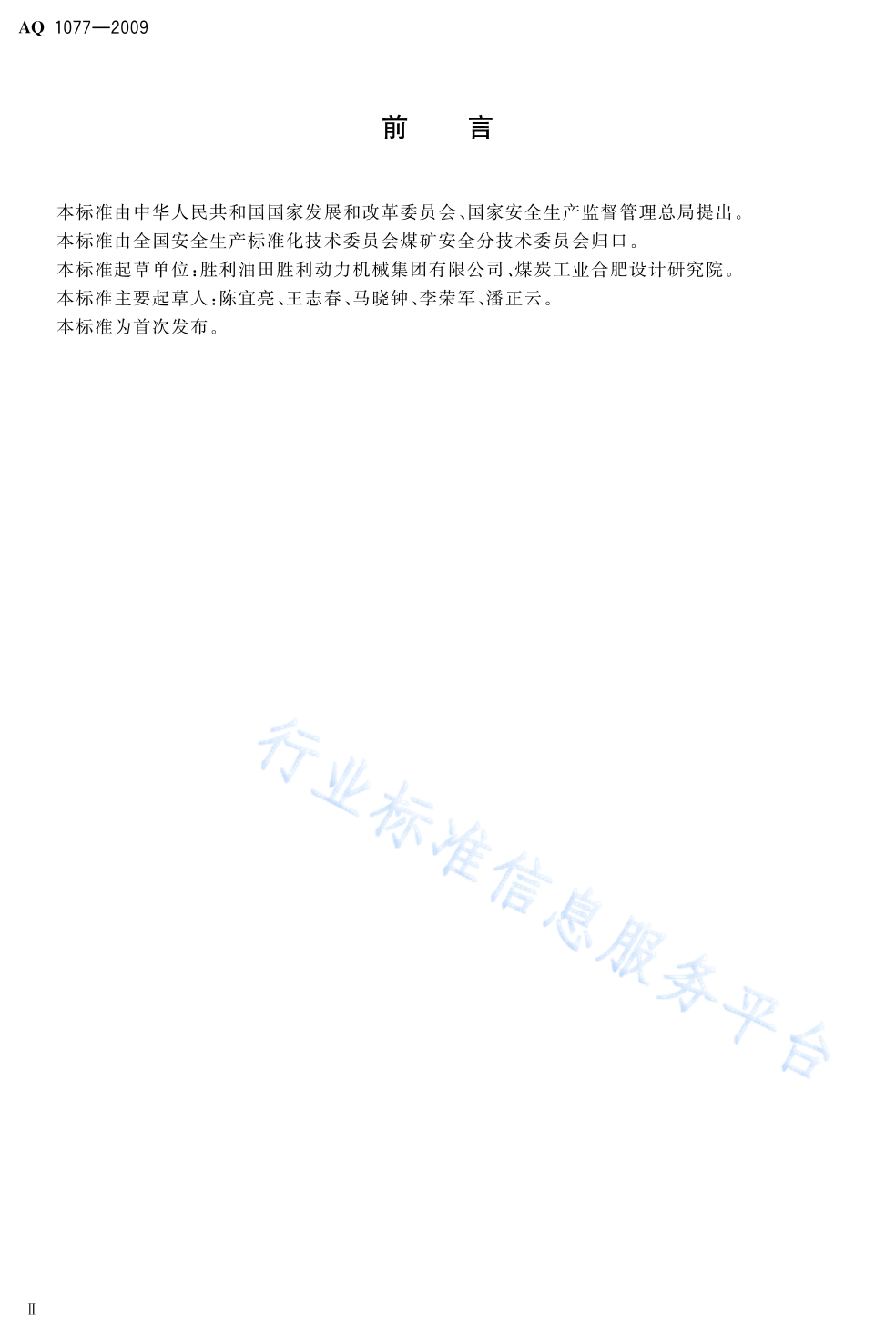 AQ 1077-2009 煤矿瓦斯往复式内燃机发电站安全要求