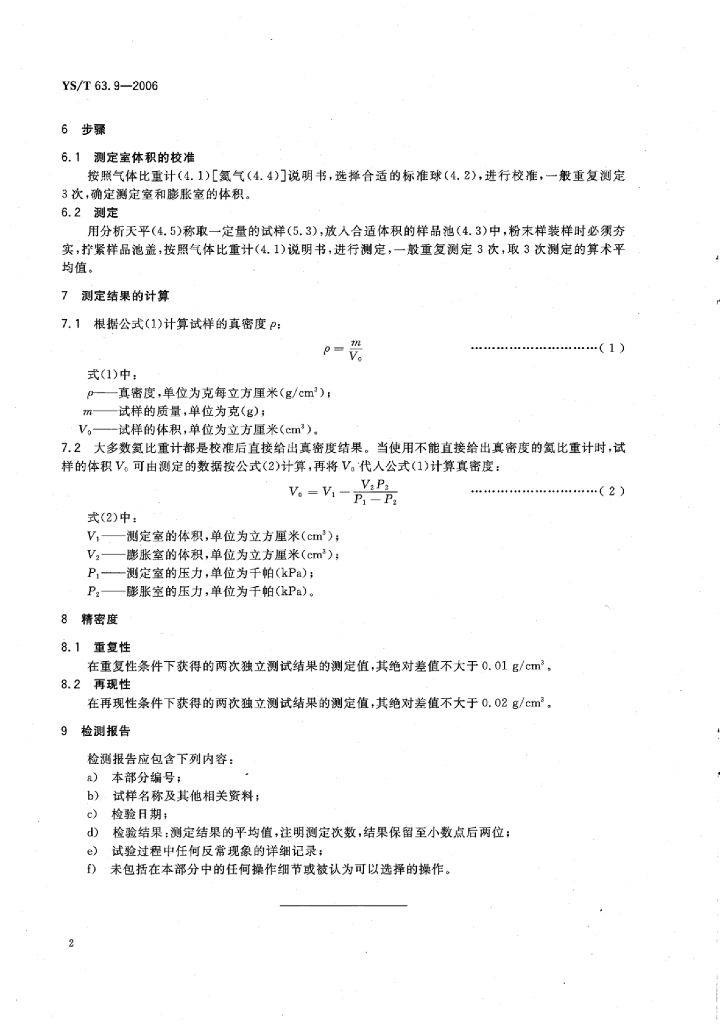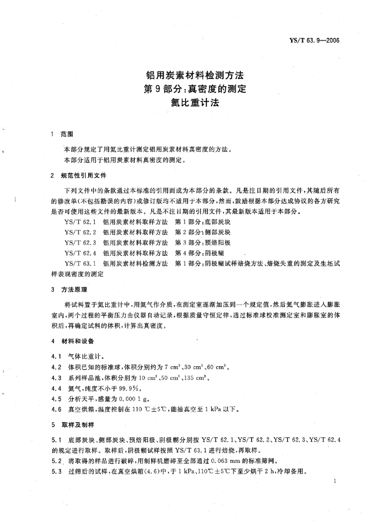 YS/T 63.9-2006 铝用炭素材料检测方法 第9部分:真密度的测定氦比重计法