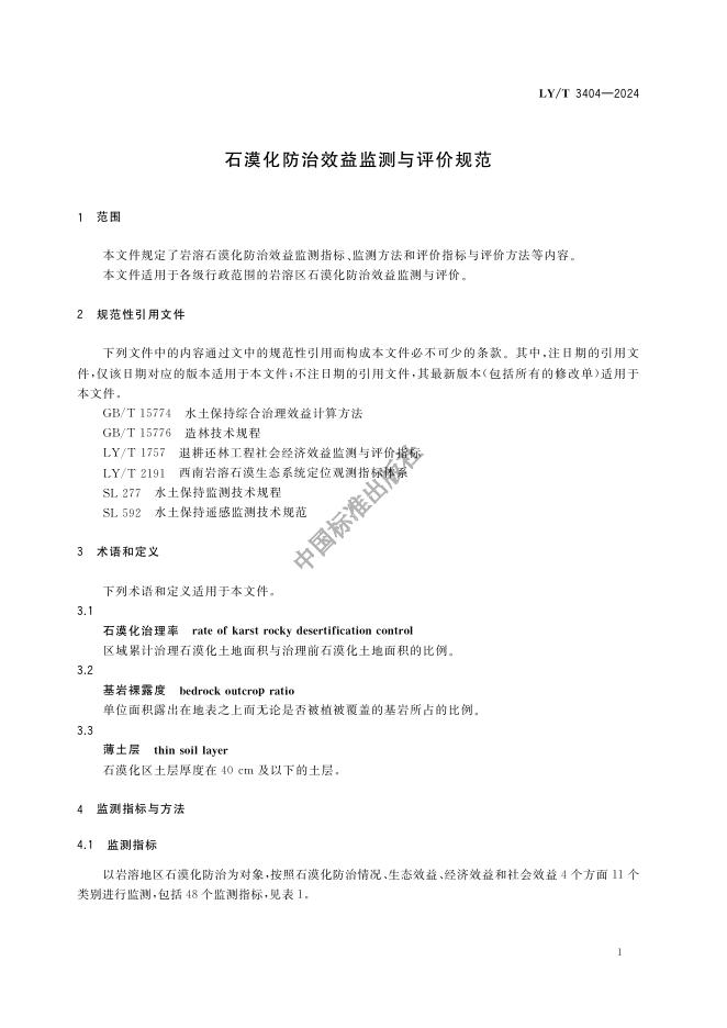 LY/T 3404-2024 石漠化防治效益监测与评价规范