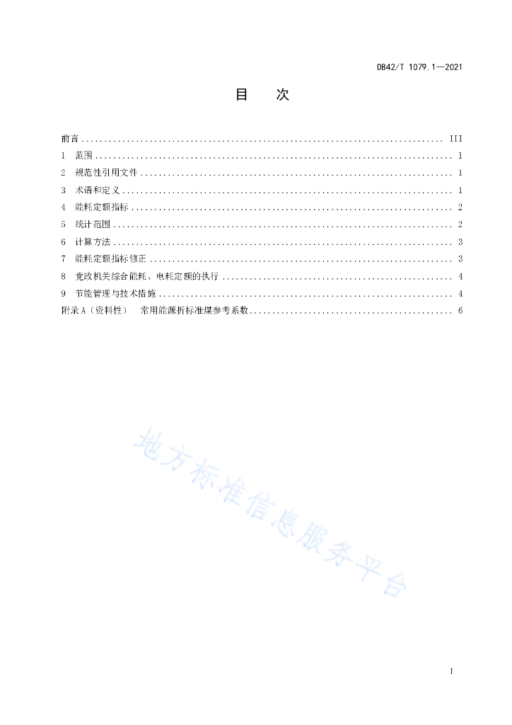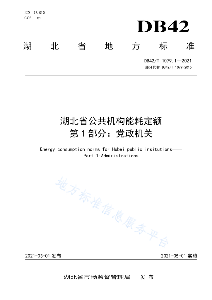 DB42/T 1079.1-2021 湖北省公共机构能耗定额 第1部分:党政机关