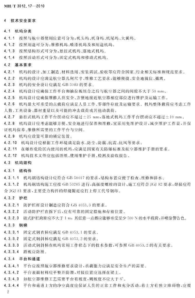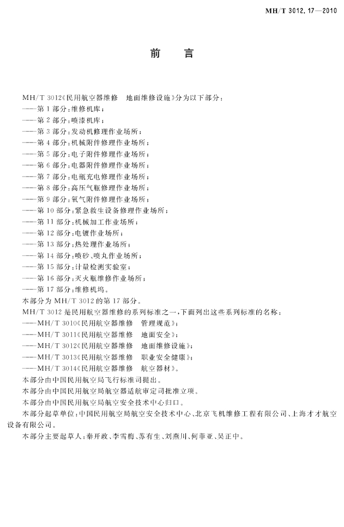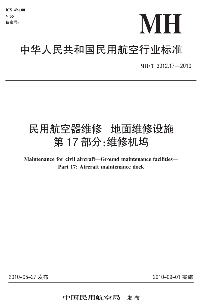 MH/T 3012.17-2010 民用航空器维修 地面维修设施 第17部分:维修机坞
