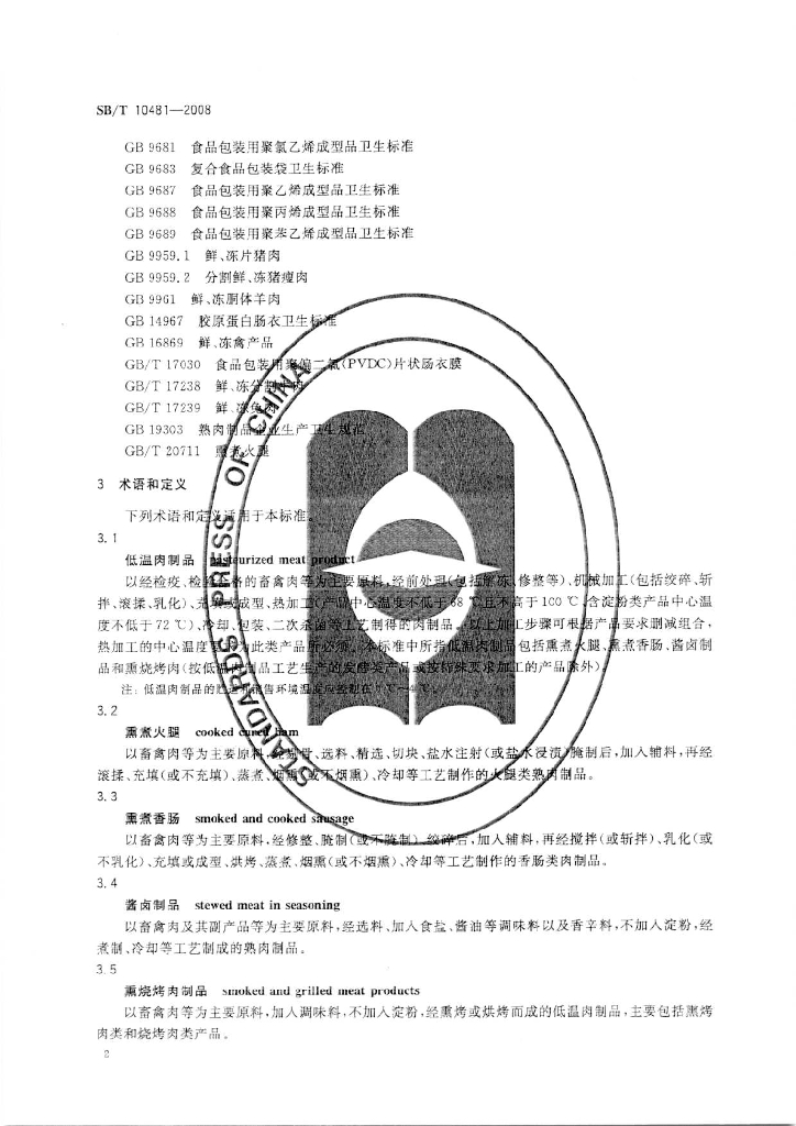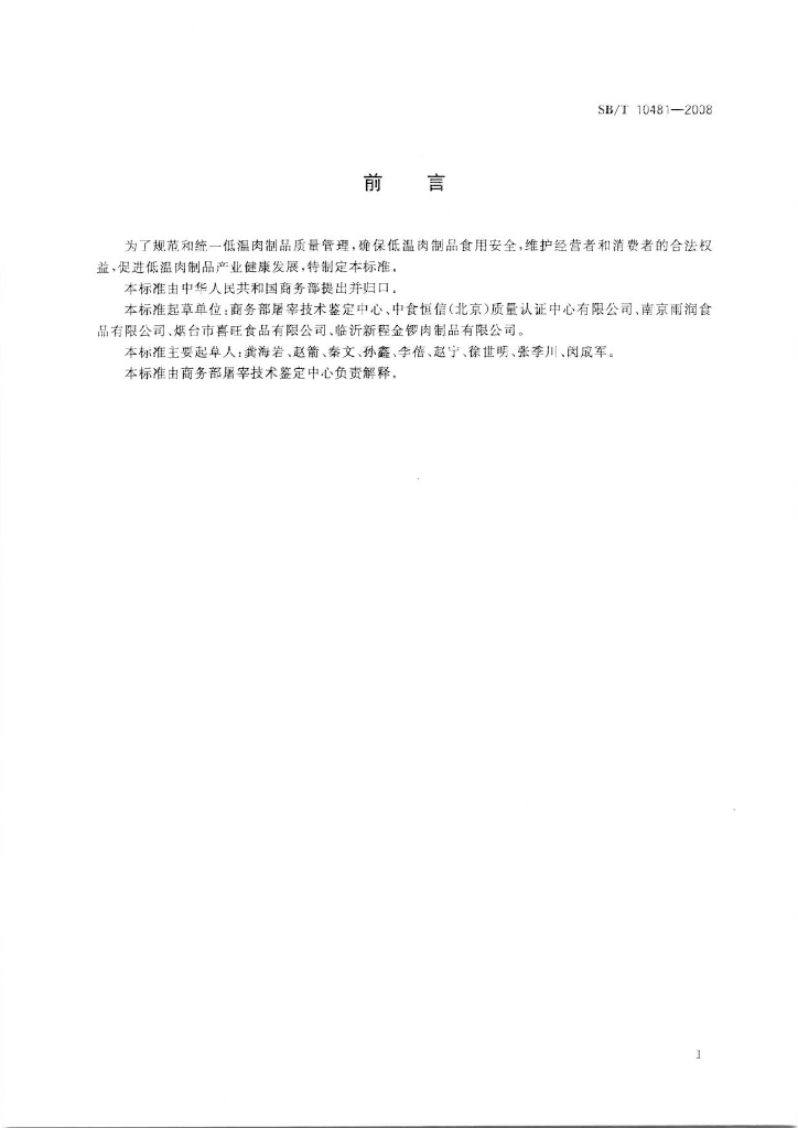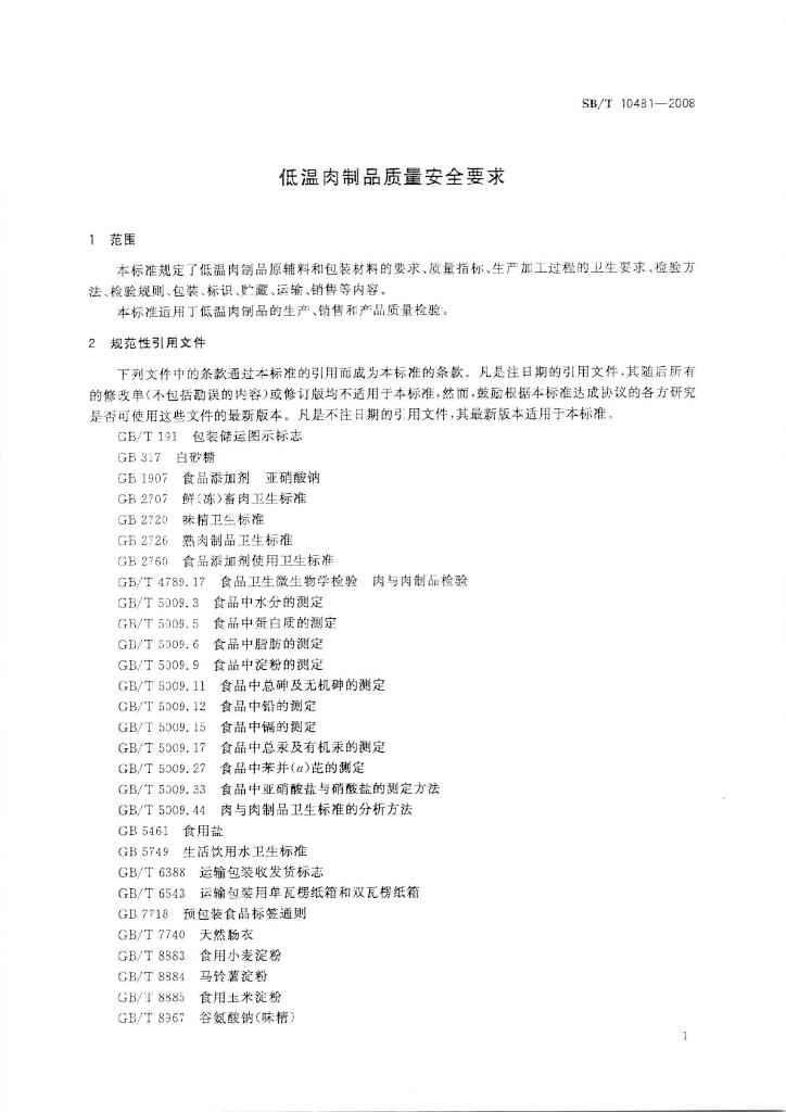 SB/T 10481-2008 低温肉制品质量安全要求