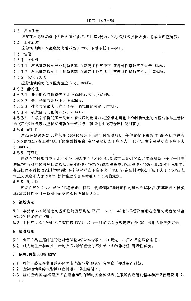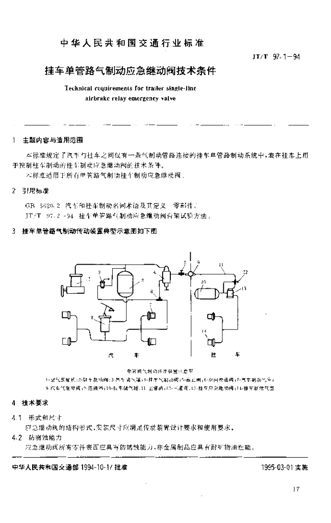 JT/T 97.1-1994 挂车单管路气制动应急继动阀技术条件
