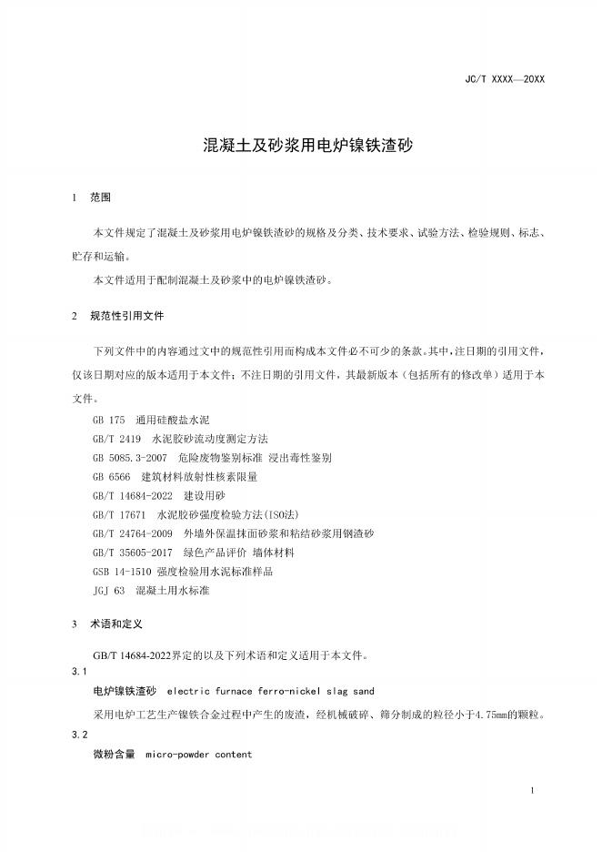 JC/T 2830-2024 混凝土及砂浆用电炉镍铁渣砂