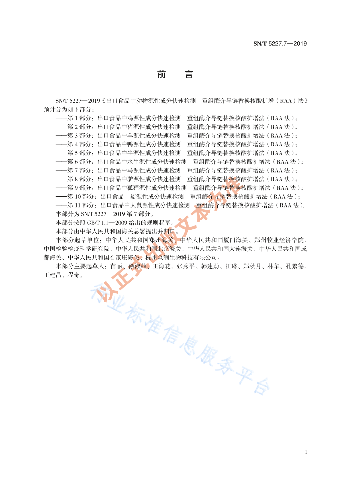 SN/T 5227.7-2019 出口食品中马源性成分快速检测 重组酶介导链替换核酸扩增法(RAA法)
