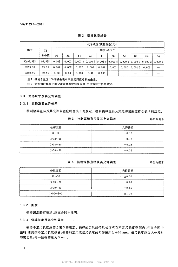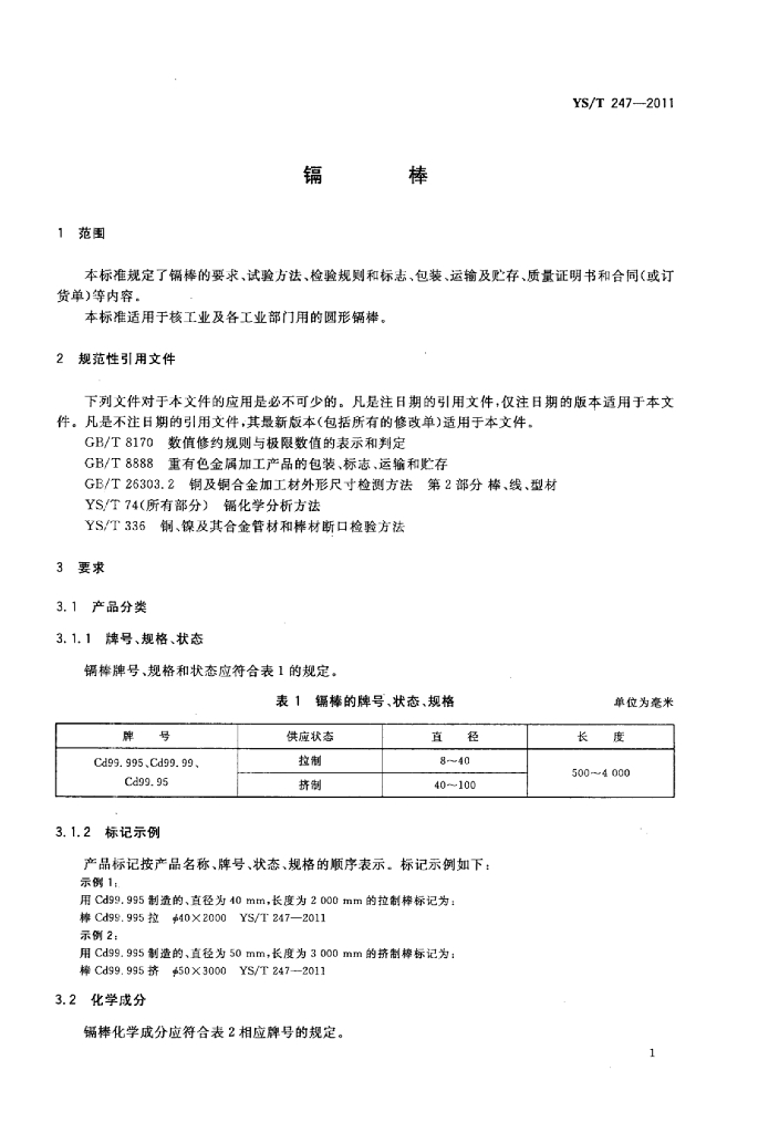 YS/T 247-2011 镉棒