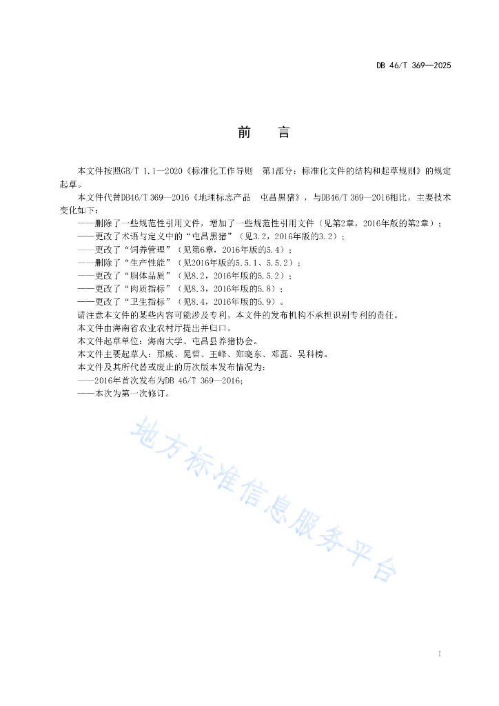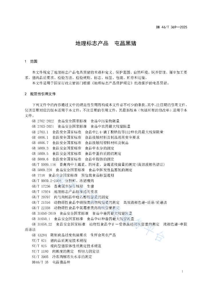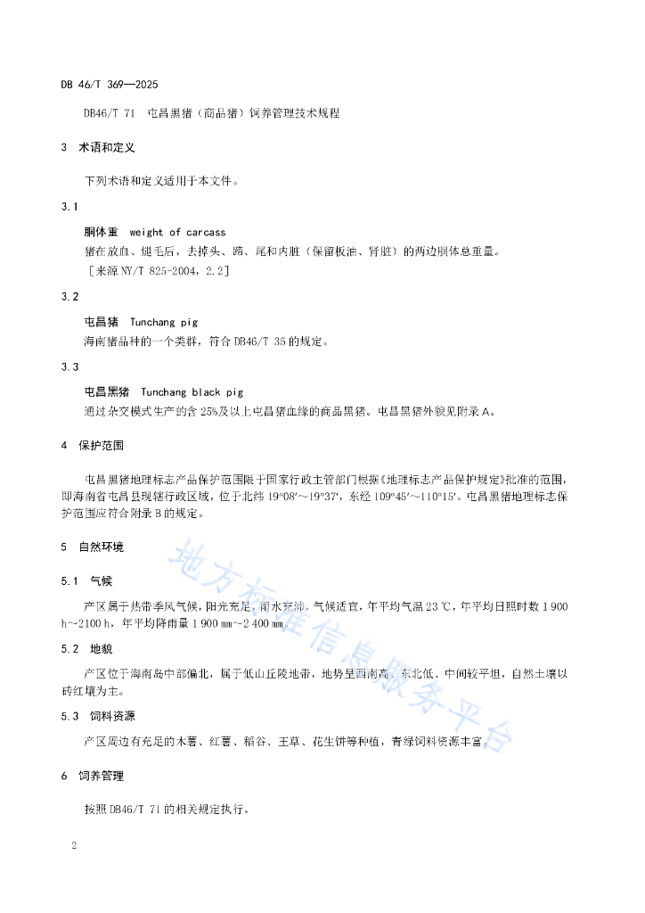 DB46/T 369-2025 地理标志产品 屯昌黑猪