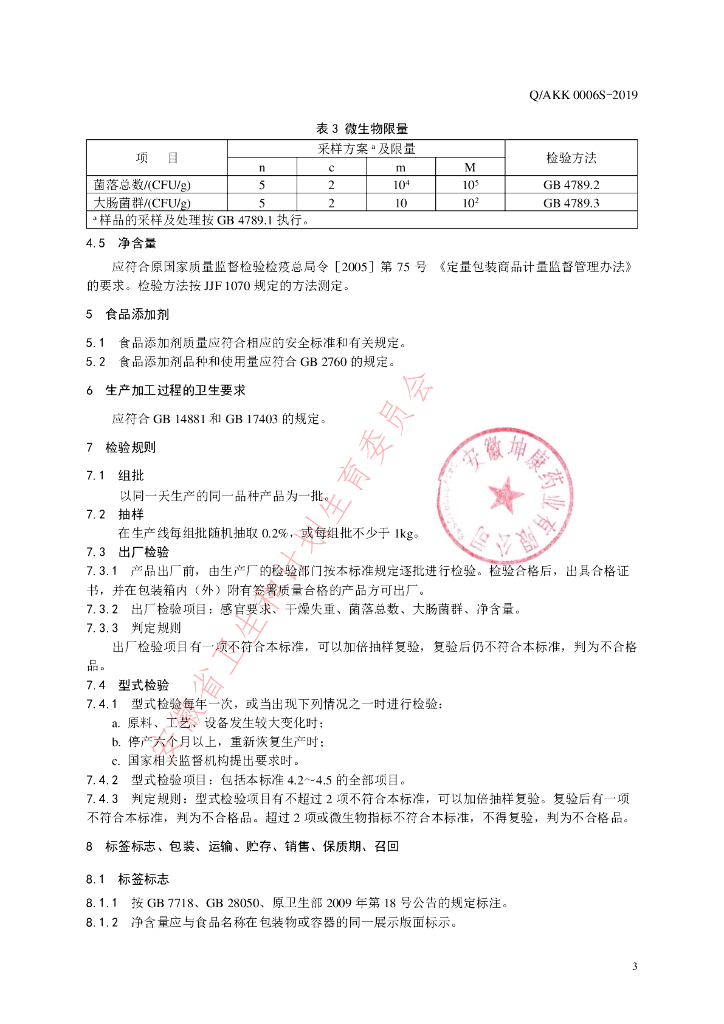 Q/AKK 0006S-2019 无糖乳矿物盐钙片(压片糖果)