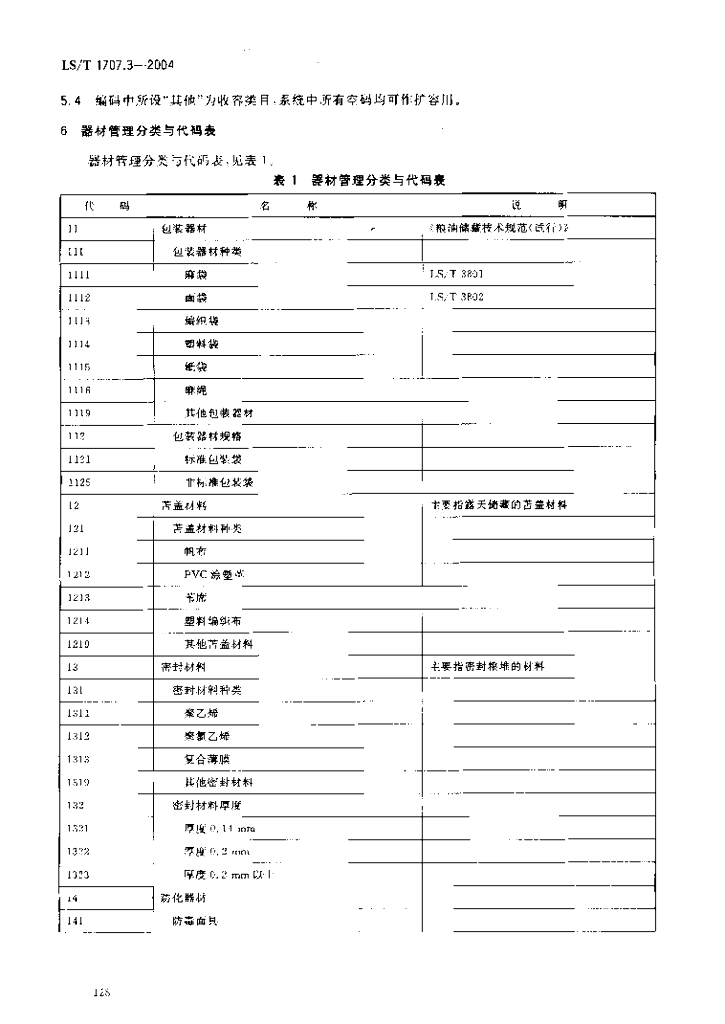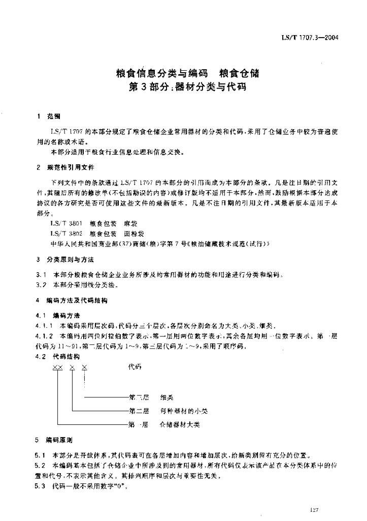 LS/T 1707.3-2004 粮食信息分类与编码 粮食仓储 第3部分:器材分类与代码
