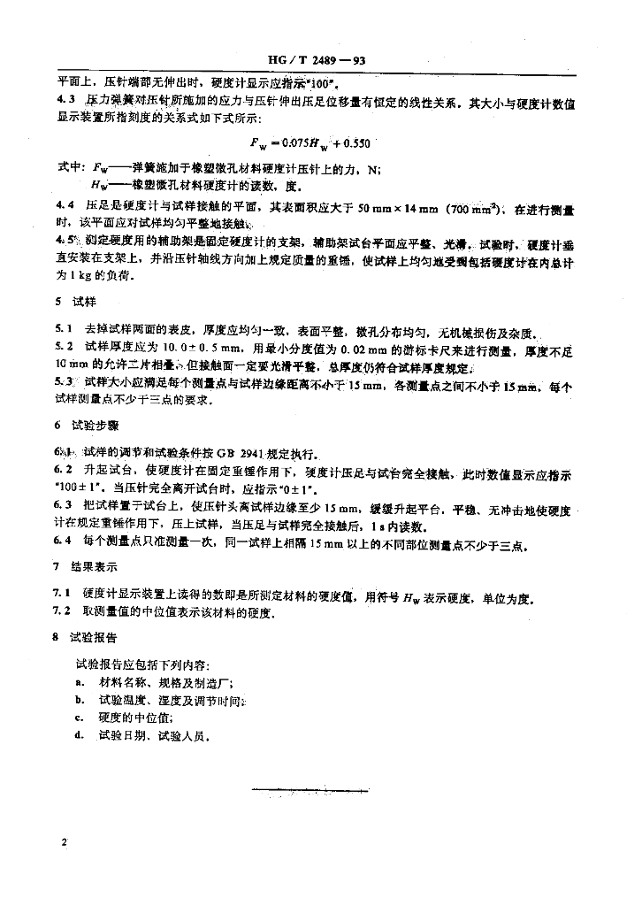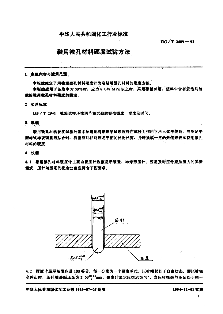 HG/T 2489-1993 鞋用微孔材料硬度试验方法