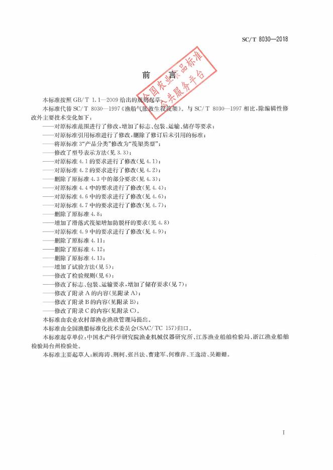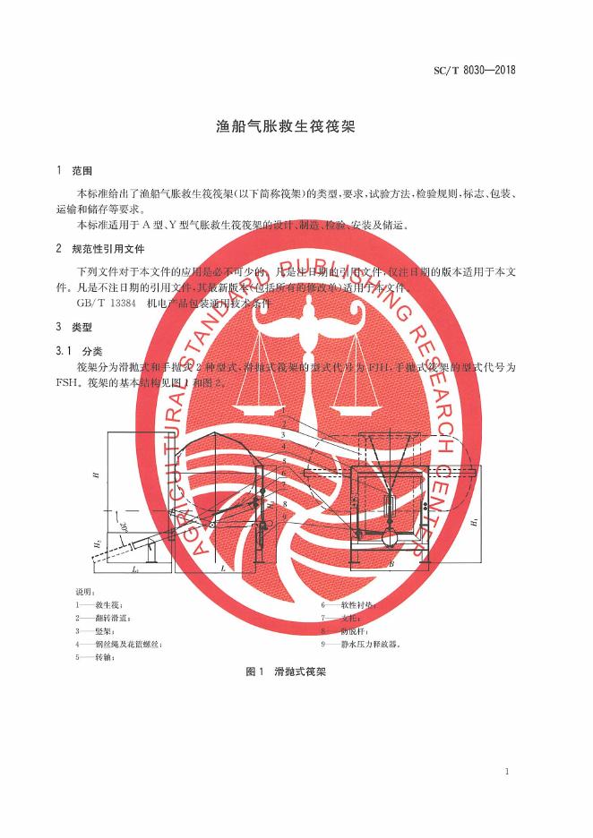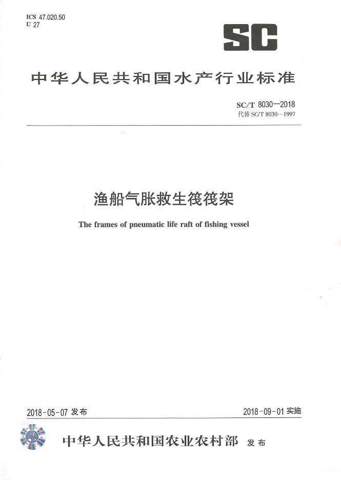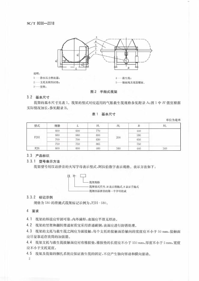 SC/T 8030-2018 渔船气胀救生筏筏架
