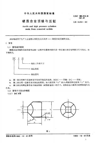 GB/T 3456-1982 硬质合金顶锤与压缸