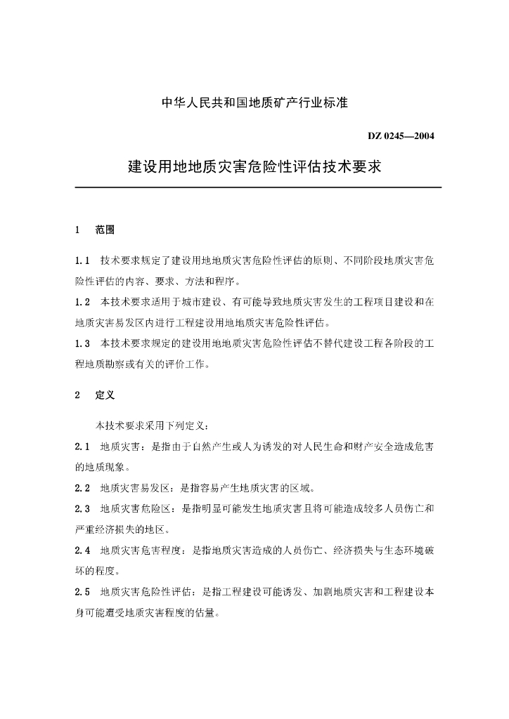 DZ 0245-2004 建设用地地质灾害危险性评估技术要求