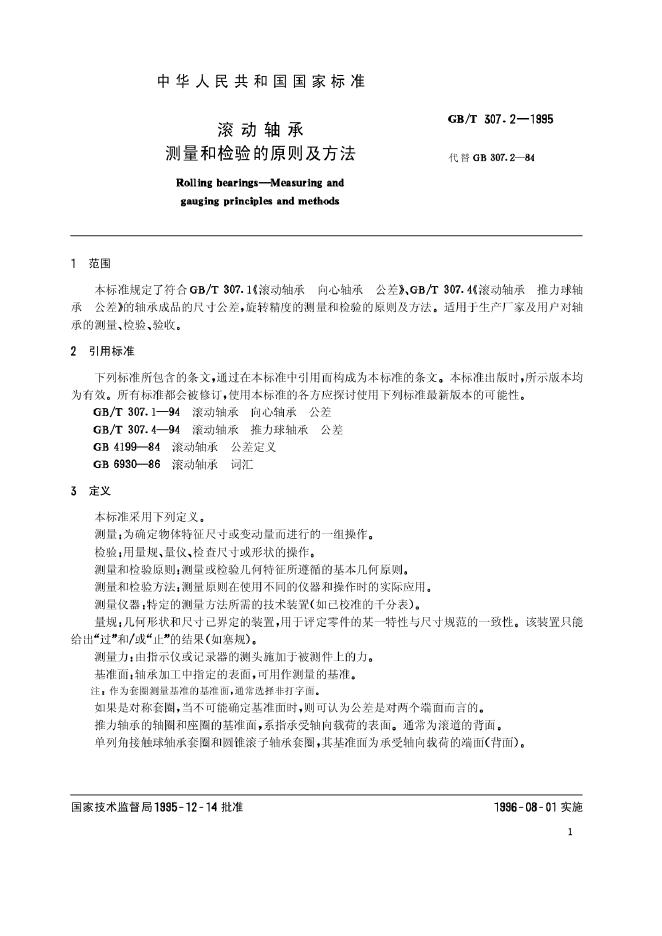 GB/T 307.2-1995 滚动轴承 测量和检验的原则及方法