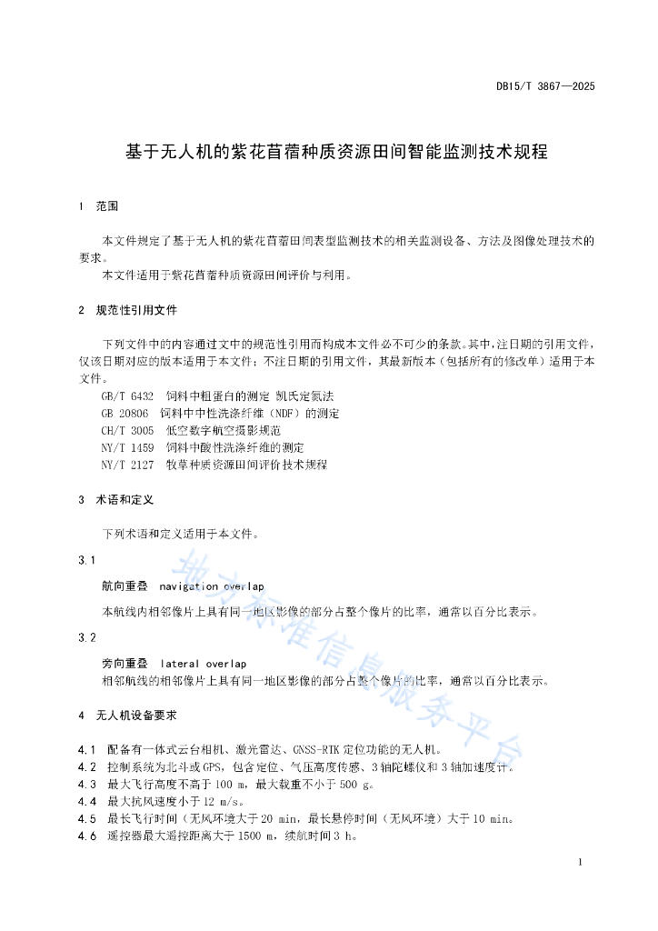 DB15/T 3867-2025 基于无人机的紫花苜蓿田间智能监测技术规程
