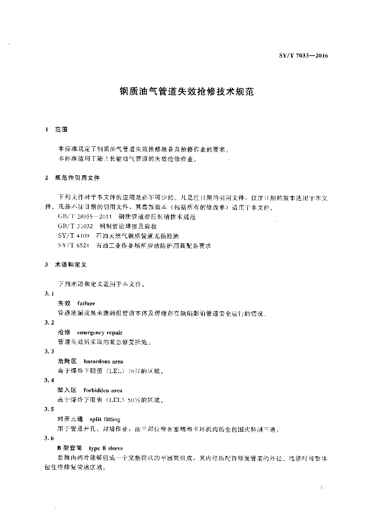 SY/T 7033-2016 钢质油气管道失效抢修技术规范