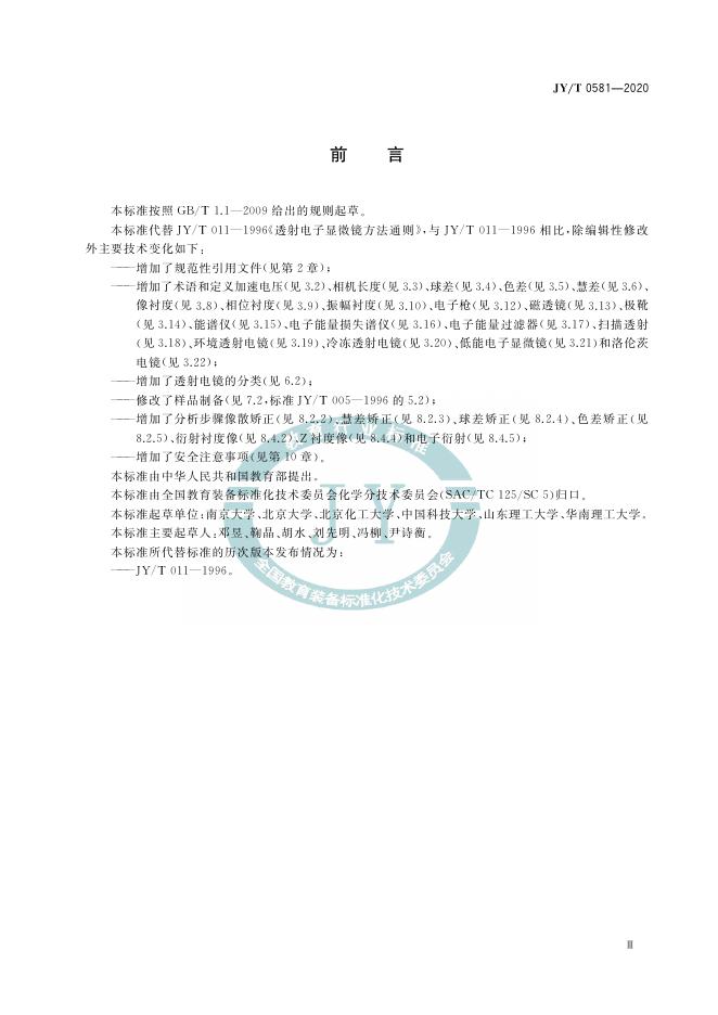 JY/T 0581-2020 透射电子显微镜分析方法通则