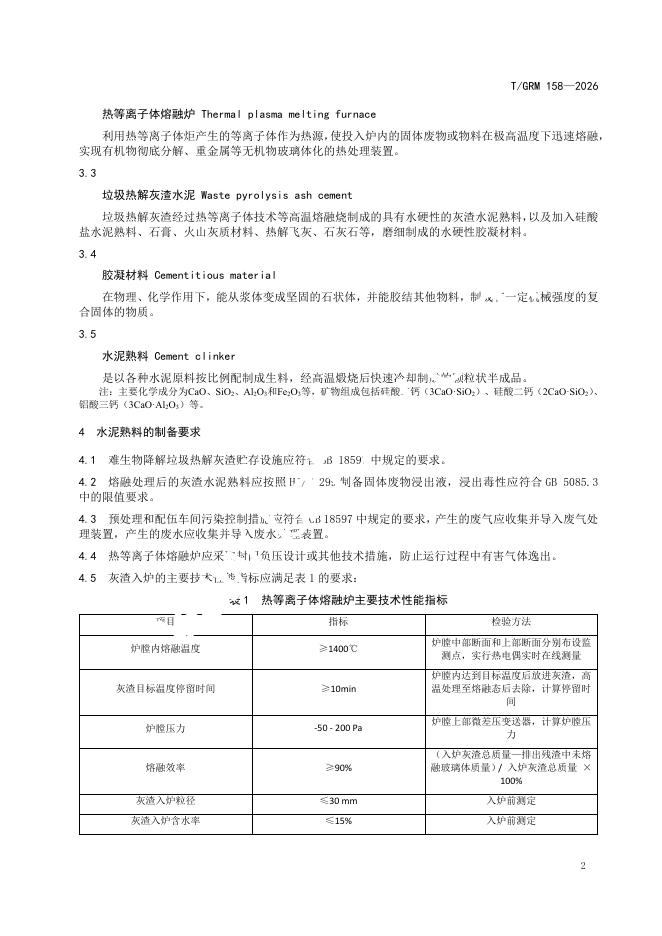 T/GRM 158-2026 垃圾热解灰渣制备复合水泥技术要求
