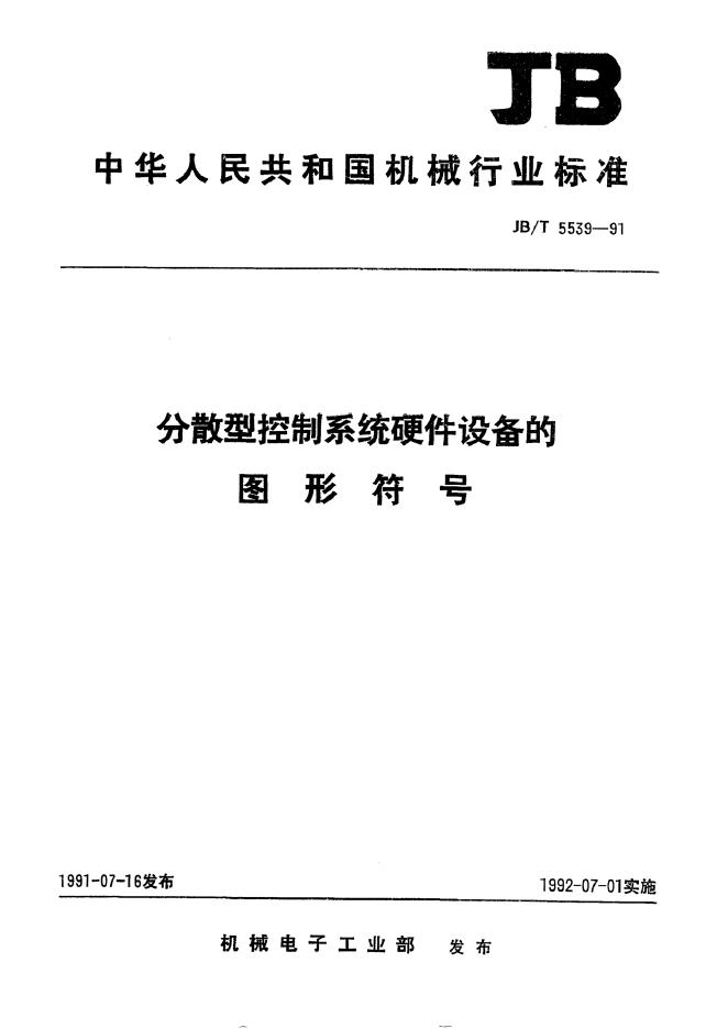 JB/T 5539-1991 分散型控制系统硬件设备的图形符号