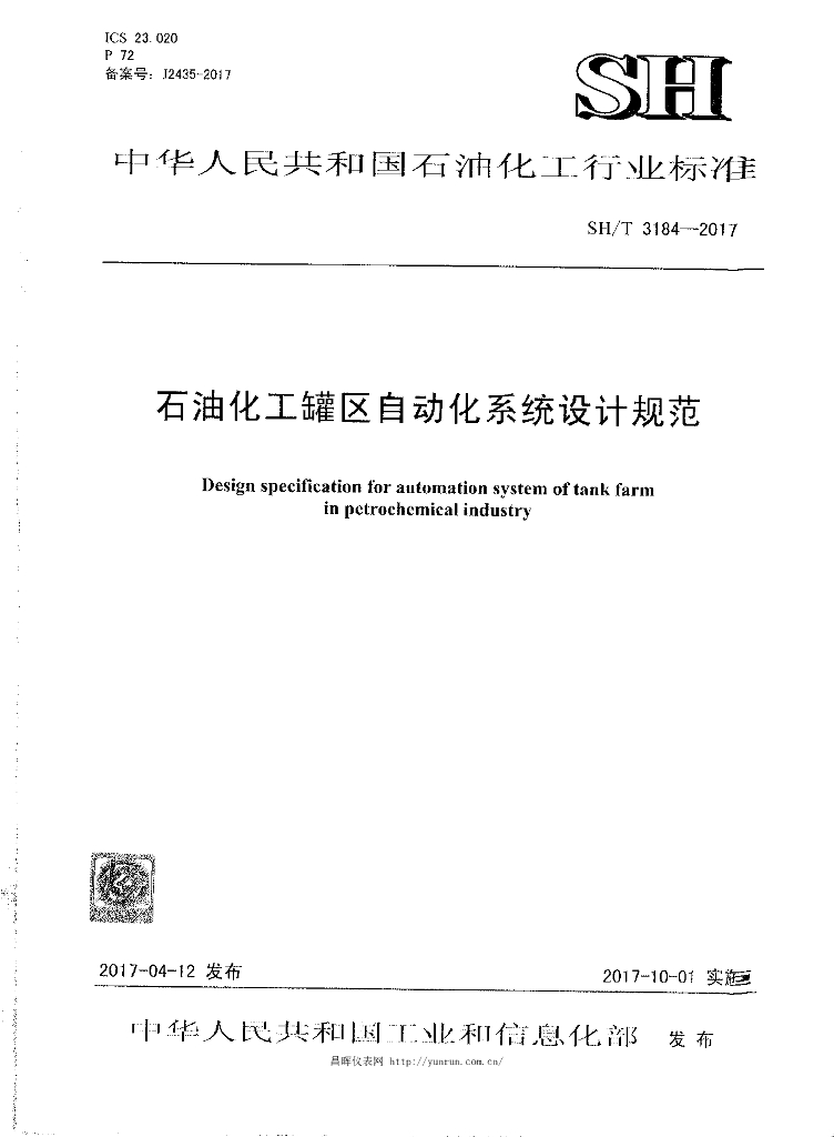 SH/T 3184-2017 石油化工罐区自动化系统设计规范