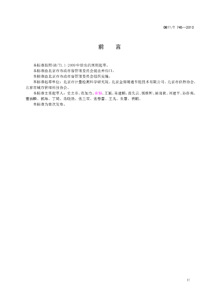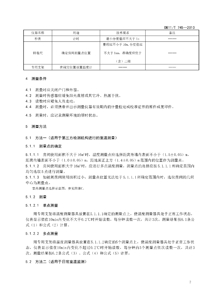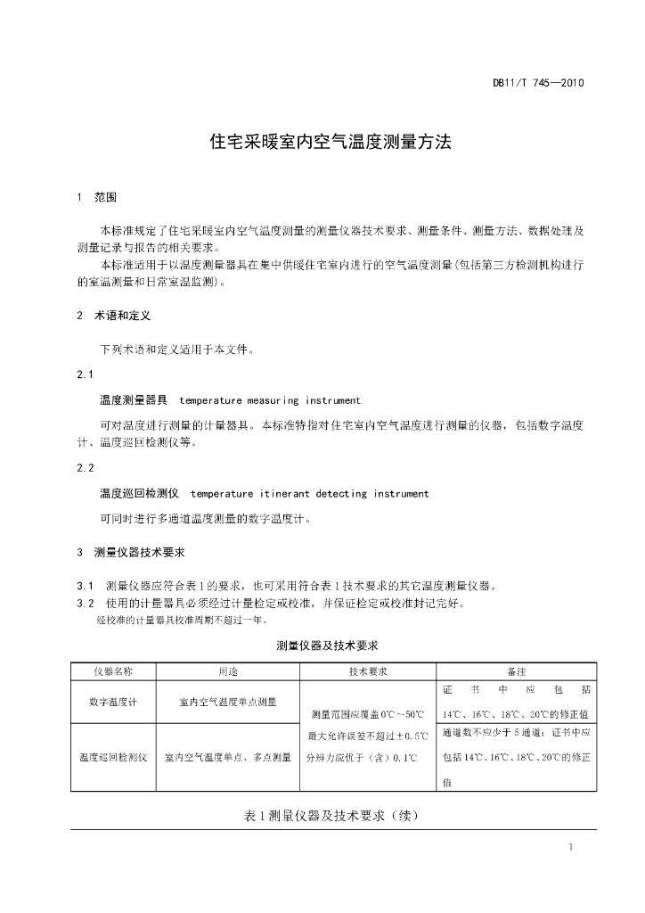 DB11/T 745-2010 住宅采暖室内空气温度测量方法