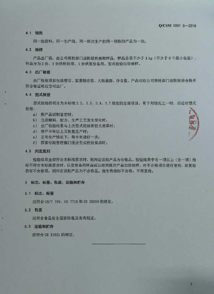 Q/CSM 0001S-2018 辣椒豆瓣调料