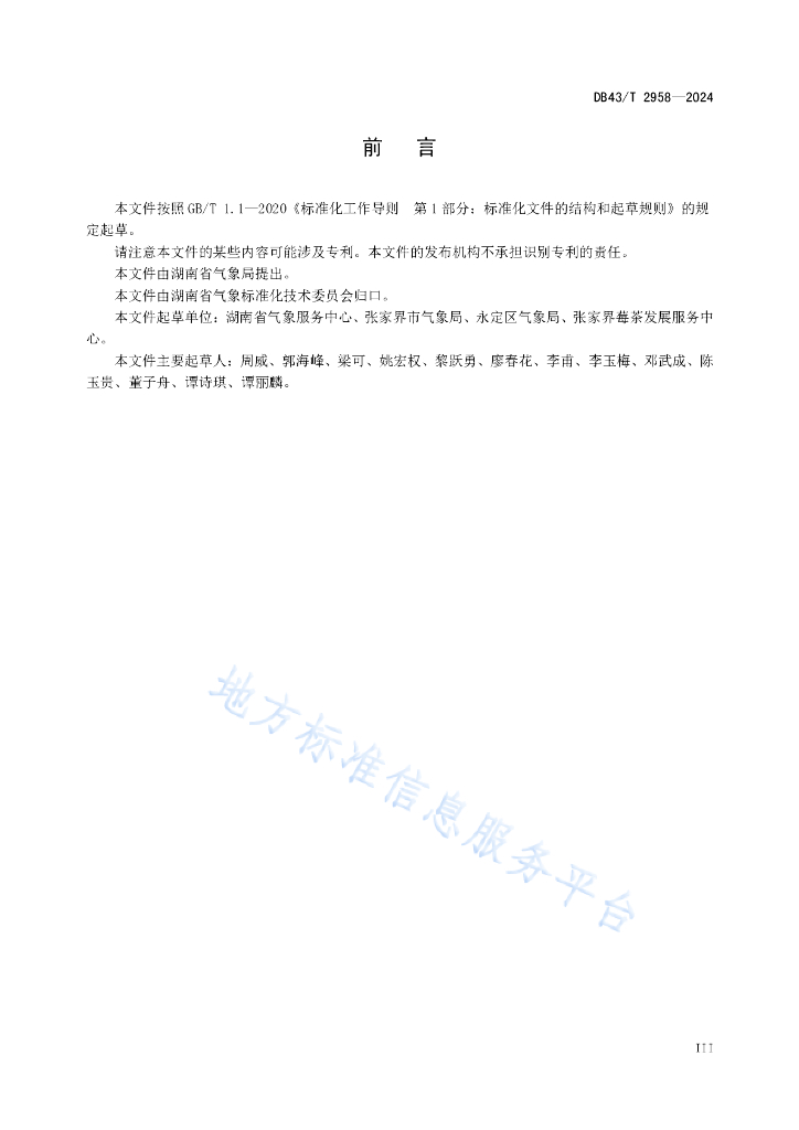 湖南省气象服务中心、张家界市气象局、永定区气象局、张家界莓茶发展服务中心