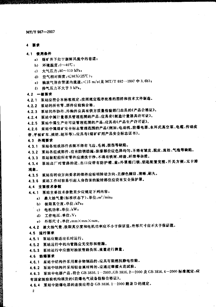 MT/T 987-2007 煤矿井下移动式瓦斯抽放泵站技术条件